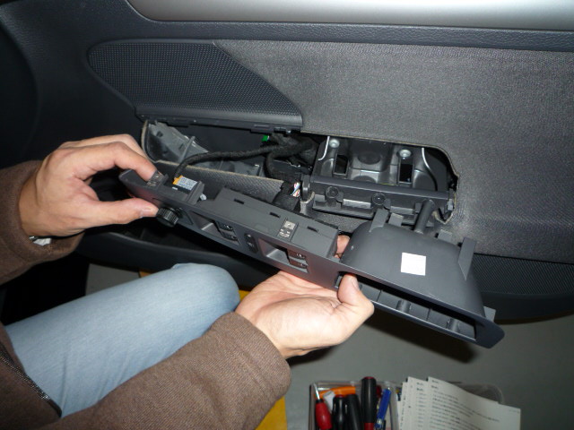 完全に外れました。この状態になってからスイッチ類の交換をします。配線コネクタは必ず抜いた状態で作業してください。