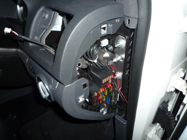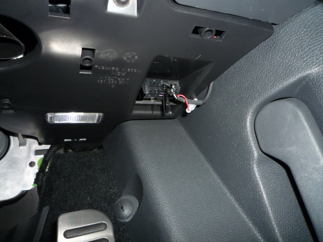 ケーブルの長さが余りますので、付属のタイラップで車輌のダッシュボード脇のヒューズボックスのスペース内に括り付けてください。配線がエアコンルーバーのところまで引き出されましたら、配線ケーブルの布設はこれで完了です。あとはPivotマルチゲージXVを装着するだけです(by_maniacsコンプリートの場合はエアコンダクトリッドを装着します)。続きは順次アップしていきます。
