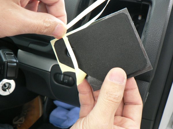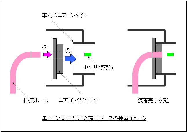 リッドはクッションラバーでできていて、ダクトをぴったり塞げるようになっています。周囲にはフランジ状に出っ張りがあり、その裏側は粘着剤がついていてリッドに完全に密着します。エアコンダクトの内側右上にセンサーがありますので、リッドの右上に掃気穴を設けて気流を逃がすようになっています。これでセンサーも正常に機能します。