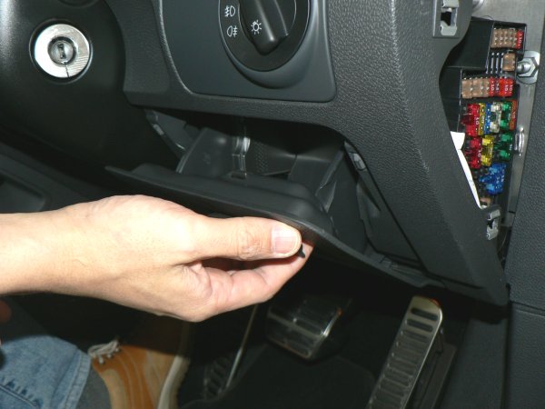 by_maniacsコンプリートの場合、もう一つだけ部品を外す必要があります。掃気ホースを通す作業のため、ヘッドライトスイッチ下の小物入れを一旦外します。まずは、小物入れを開いて、つっかえる角度まで全開にします。写真の車輌はここにETCが着いていますが、普通はありませんのでご安心ください。