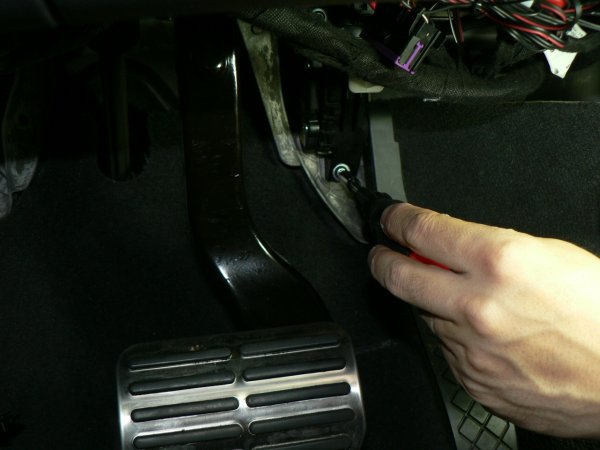 次のお客様は、トゥアレグにV8用ペダルの装着です。ブレーキペダルはすでに装着されていて、アクセルペダルのみの作業です。トゥアレグのアクセルペダルは、ノーマルの上から被せるのですが、なかなかスムーズに被らない場合も多いようです。maniacsでは、アクセルペダルを一旦車輌から取り外して確実な装着作業を行っています。作業方法は、追って別記事でブログに上げる予定です。