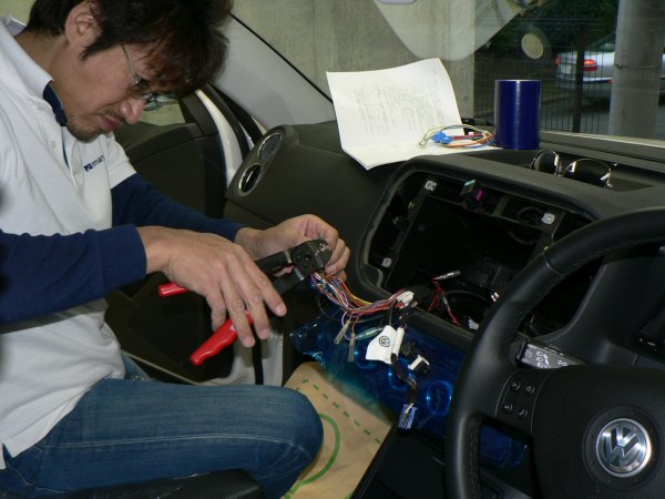 次は、Tiguan Sports&Style(2009)で、RNS510 TV/NAVIロックキャンセラーの装着です。これは、maniacsで現在通常販売しているものではなく、スペシャルオーダーしていただいたTiguan適合品(52,500円)です。カプラーオンではなく、エレクトロタップで車輌のハーネスに配線するタイプです。接続完了し、問題なく動作することが確認できました。この製品は、今後maniacsでもレギュラー販売を検討中です。