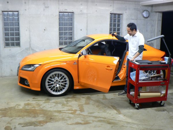 最後のお客様は、Audi TTS(2009)のデイライトコーディング変更です。写真のスモールランプ部分のLEDをデイライトとして点灯可能なようにコーディングします。一旦コーディングすれば、マルチファンクション上の切り替えで、デイライトをON/OFFできるようになるので、便利です。セッティングは一発で完了。予定通りの動作ができました。併せて、Audi leather cover for car keysの装着確認もさせていただいた上で、ご購入となりました。純正ですので、内装色にピッタリマッチし、maniacsベゼルとの併用も一応可能です(ベゼルとの若干の接触はあります)。