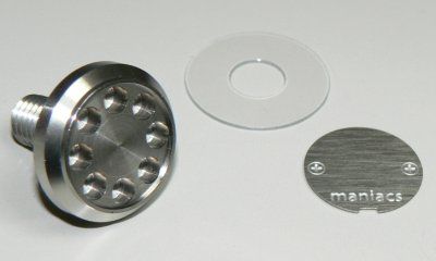 工房長です。maniacsのライセンスプレートスタッドに、プレーンタイプの商品を追加しました。VWライセンスプレートスタッドの発売開始当初からお知らせしていました、シンプルなデザインのタイプです。外径、素材、構造を踏襲して、前面のカバープレートをシンプルなステンレス素材エッチング仕上げにしています。ライセンスプレートスタッドをあまり目立たせず、さりげなくグレード感を高めたいというニーズにぴったりです。とってもリーズナブルな価格(税込882円)でご提供いたします。