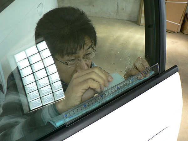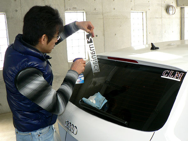 お客さまの愛車にmaniacsのステッカーを貼っていただけるのは、本当に嬉しいことです。maniacsはもともと2005年にユーザーズコミュニティで自分たち自身で貼るステッカーを製作したのが始まりなので、ステッカーには一方ならぬ思い入れがあります。中でもセキュリティステッカーは定番アイテムで、サイドウィンドウの内側から貼るタイプです。さりげないカッコ良さで、防犯性も期待できるのがロングセラーの理由と思います。