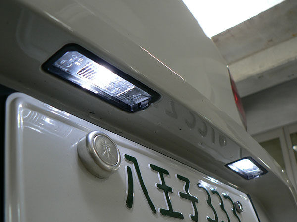 LEDテールランプを装着した場合、バックランプが暖かみのある電球色だと、見ようによっては少しちぐはぐな印象になってしまいます。BELLOF REVERSE MIRROR BULBを装着することでリア周りから牧歌的な雰囲気を排除し、併せて夜間の後方視認性の向上も狙います。写真のようにバックランプが白く光ることで後退の際にもリアビューの統一感が保たれます。今回、合わせてmaniacs iCOLORも装着しました。簡単なエンブレムチューンですが、とても変わり映えがします。