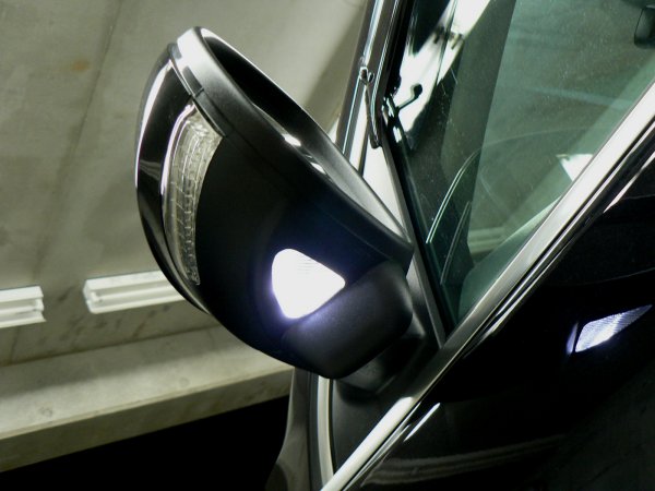 ルームランプ前2箇所、後2箇所、バニティミラーランプ、グローブボックスランプ、フットランプ、トランクランプと、内装の全てのランプ類を一気にLED化しましたので、夜の車室内の雰囲気がガラっと変わったと思います。これだけ一気に変更すると、流石に代わり映えがしますね。併せて、外装で残っていたドアミラーランプも今回LED化しました。これで、外装もフルLED化されたことになります。