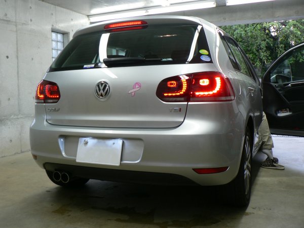 この日4台目のお客様は、シルバーのGolf6 Comfortline (MY2011)で、Golf6 純正LEDテールライトセット by maniacs(ダークレッド(GolfR仕様)2009年45週生産以降の車両用)を装着しました。maniacsではこれまでにGolf6の全てのグレード、年式の車輌にLEDテールライトを装着した実績があります。このノウハウを基に、現在では通販用に構成した商品も取り扱っています。もちろん、maniacs本社工房での取付けも継続しています。maniacsならではの豊富な実績に裏付けられていますので、安心してご注文いただけます。遠路お越しくださるお客様が多いのも、maniacsのひとつの特徴だと思います。シルバーのボディにLEDテールライトが絶妙な雰囲気でマッチしていますね。