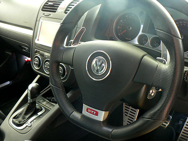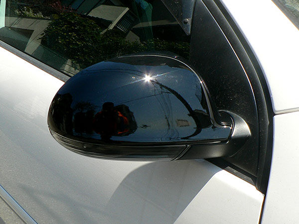 次のお客さまは、ホワイトのGolf5 GTI (MY2008)で、VW Piano black Mirror Caps (Golf5)と、Passat CC Window Switch(Passenger/ Rear)×2個を装着しました。Golf5の場合、ブラック以外のボディカラーで艶ありブラックのMirror Capsを組み合わせた仕様はノーマルでは存在しません。ホワイト等のボディカラーでMirror Capsを艶ありブラックにするのはGolfRで設定された仕様ですが、このコーディネートをGolf5に施すと、じつに新鮮な印象になります。フォーマルな印象とスポーティな雰囲気を両立できる効果的なモディファイです。