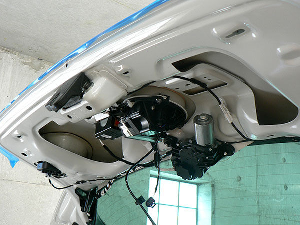 この日最初のお客さまは、ホワイトのGolf6 GTI (MY2010)で、VW純正 バックカメラ レトロフィット Golf6 by maniacsを装着いたしました。ナンバープレート付近に既にバックカメラが装着されてあり、その既設カメラの取り外しも行いました。既設のカメラは配線を埋め殺しにしてしまえば作業は簡単なのですが、配線を含めて完全に撤去しようとすると、装着時に剥がした内装を再度全て剥がして作業する必要があるため、装着作業とほぼ同じ工数が掛かります。