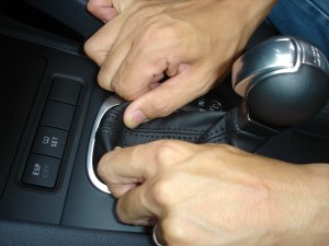 このとき、シフトノブ自体を上に強く引っ張らないように気をつけてください。シフトノブの抜け止めロックがきちんと掛かっていない場合があり、ノブを上に強く引っ張るとノブがシャフトから抜けてしまうことがあります。万一ノブを抜いてしまった場合の戻す手順はこちらとこちらをご参照ください。