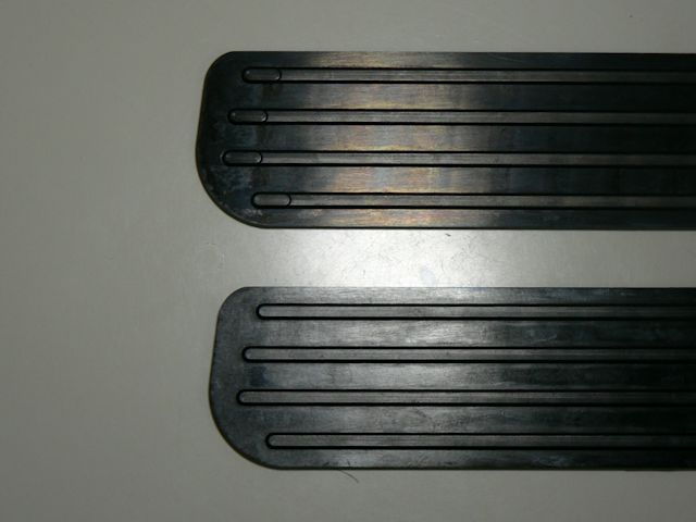 ゴム部品の表面は、ラダー状の突起が一面に並んでおり、この突起の全てを0.6mm太くするために、金型はほぼ全面的に削り直しました。僅かな調整のために大掛かりになってしまいましたが、ここはmaniacsとして妥協できないところです。仕上がりは完璧にイメージどおりにできました。ゴム部品は裏面にも変更を入れて、純正ペダルの縦溝に嵌めるゴム部品の縦リブを調整しました。先端付近に一段高いリブを設けて、ここでしっかり位置決めをします。追加した0.2mmの段差が要になります。