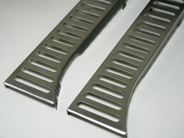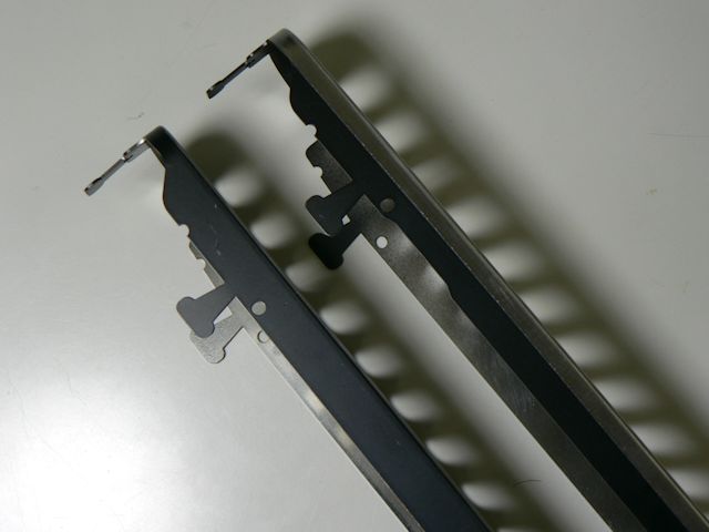 このGTIタイプアクセルペダル(仮称)はお客様がご自身で簡単・確実に装着できるように、シンプルで堅牢な固定構造にしています。Tゼロの時点ですでにしっかりと固定できる状態だったのですが、作業の容易さと装着精度の向上のために、固定構造部分も設計まで遡及して調整を施しました。写真の左が調整前で右が調整後です。ステンレスプレート自体の爪を曲げて固定するのですが、装着時に単純に力を加えただけで所定の形状に変形するように、爪の形状と向きに細かな工夫を加えています。