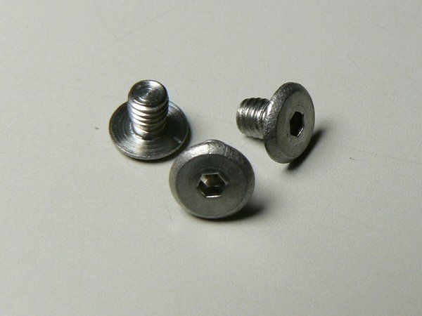 ばか穴の直径は、通常はM3のネジに対してφ3.5mm〜大きくてもφ4mmまでが一般的ですが、今回は作業性の向上とピッタリと装着するためのトレランスを十分に確保するため、ばか穴をφ4.5mmまで広げています。その上で締結強度と安定性を確保するために、ネジ頭の直径はφ8mmと特大サイズをチョイスしています。しかも、邪魔にならないようにスーパーシンヘッド(極低頭)です。特注ではありませんが、かなり特殊なネジで、この形状のネジを探すのに非常に苦労しました。