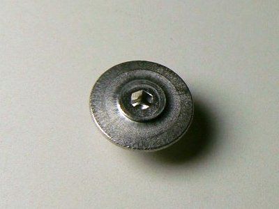 そして肝心のデザインについては、ネジ頭の直径が特大で、かつ厚みは極薄で、しかも工具穴は小さめの1.5mmの六角。一見して普通のネジには見えないようなメカニカルな外観です。このネジ頭の目立つ外観を逆手にとって、ネジの配置をバランスさせることで、全体のデザインの中にうまく取り込んで活かしています。左の写真をクリックして拡大してみてください。下2ヶ所のネジが絶妙なアクセントになり、いい感じにキマったと思います。そして、1.5mmの六角レンチはやや一般的でないので、商品に工具を添付としました。たかがネジ、されどネジ、なのです。