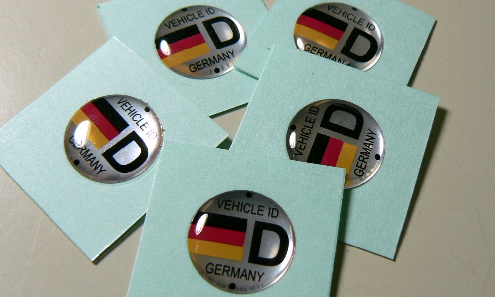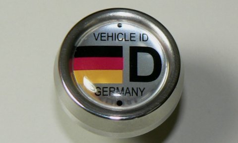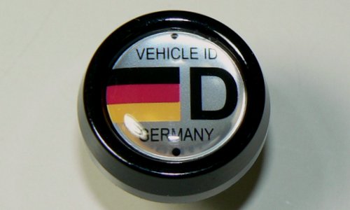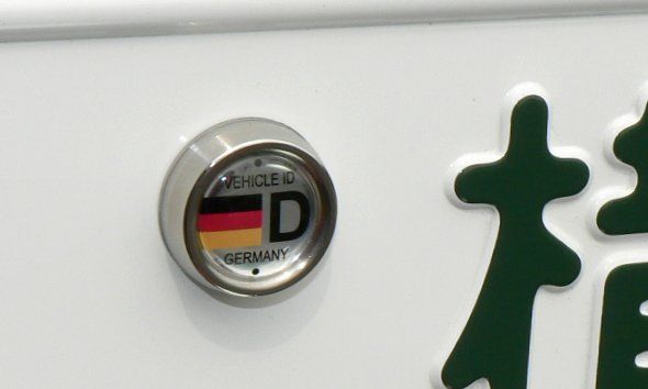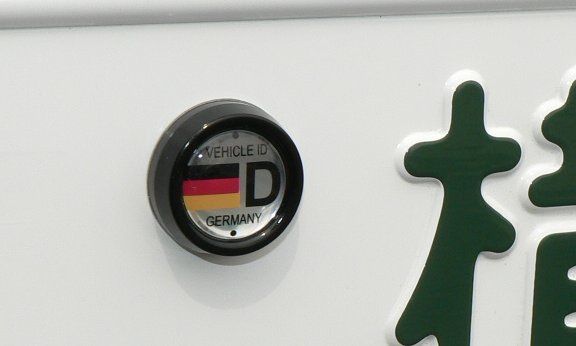 もうひとつは、VEHICLE IDライセンスプレートスタッドです。欧州は陸続きにたくさんの国があり、道路でつながっていますので、車両の登録国籍を表示する手段として「国際識別記号」が決められています。楕円の中に「D」と書かれたステッカーなどが、それです。このライセンスプレートスタッドは、国際識別記号すなわちVEHICLE IDをモチーフにしています。日本国内で「D」のステッカーを貼るのは少し気恥ずかしいけど、ドイツ車としてのアイデンティティをさりげなくアピールしたい、そんなご要望にぴったりのデザインです。