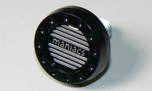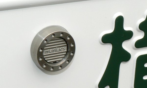 工房長です。数日前に新発売した、最新デザインのライセンスプレートスタッド2種類をご紹介いたします。ライセンスプレートスタッドは、maniacsのレギュラー商品の中でもとくにポピュラーで常にベストセラーの上位にあります。これまで、VW純正バッジを装着するタイプが3種類、maniacsオリジナルのタイプが1種類で、計4種類のラインナップでした。