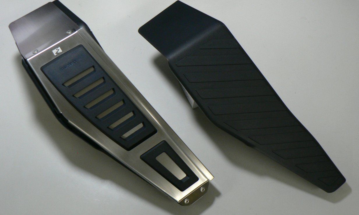 工房長です。雑誌等で開発状況をお知らせしていたmaniacs 4D-FootPlate for Golf7がついに完成し、発売開始しました。「なぜ今さら左足用?」「右足用はm+ので十分では?」という疑問もあると思います。maniacsが後発ながらもわざわざ左足用を開発した理由、そして右足用をm+製とは別にラインナップした理由を、ご説明しないわけにはいきません。前編、後編に分けて、この開発に掛けた思いを語ってみようと思います。