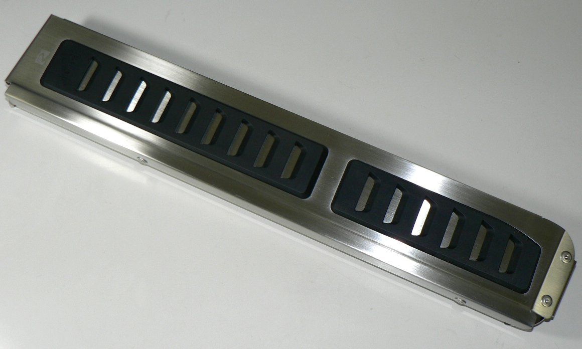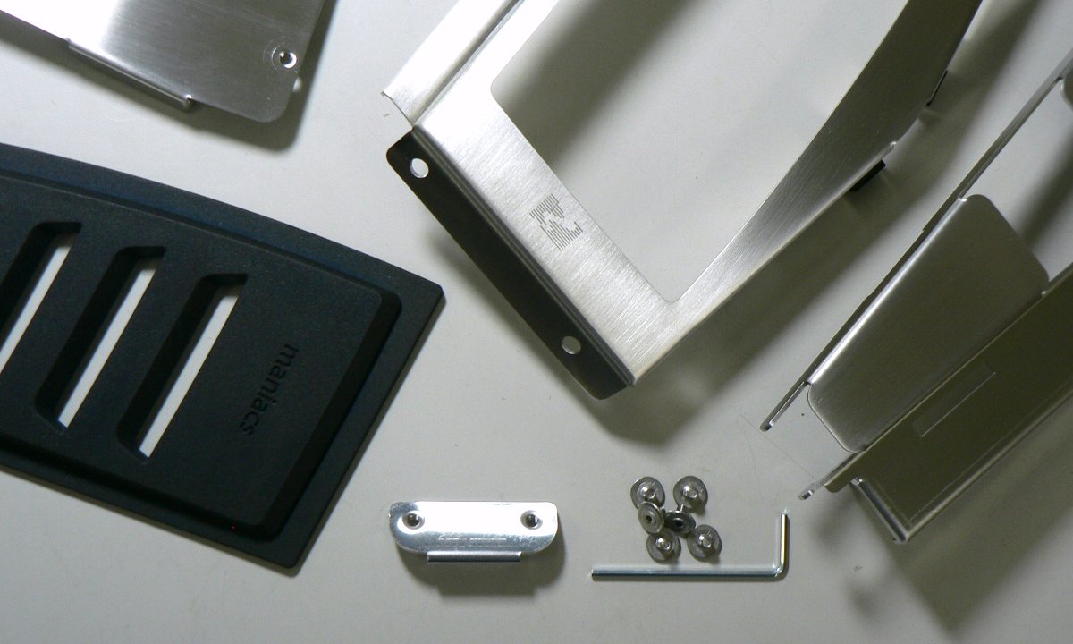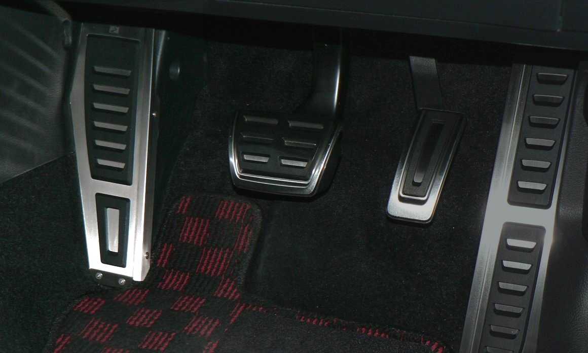 すなわちそれは、インテリアへの「究極の調和」です。Golf7のインテリアはVW社の開発段階で考え抜かれ、多くのユーザーにに愛されるように高いレベルに纏まっています。maniacsの目指す「調和」は、車両のデザインテイストをきちんと租借し、「まとまり感」や「完成度」をいっそう高めるパーツでありたい、という積極的な調和です。具体的には、ラバーとメタルのハイブリッドによる立体感、ネジやリベットのないスッキリした踏面、ステンレスのプレスラインによる陰影など、右足フットプレートで具現化した要素を満たした上で、さらにラバーの形状と質感を究極のレベルまで高めました。