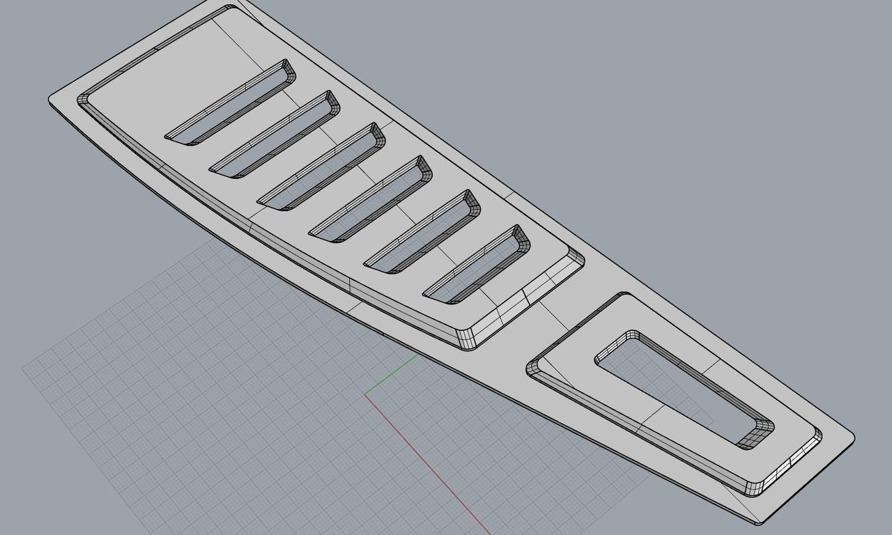 工房長です。Golf7はGolf5、6の世代と比較して大きな変革を遂げた車であり、操作系のインターフェースやインテリアの質感も進化し、車と接する満足感全体が進化しています。そこに装着するフットプレートも、Golf7の車両に呼応した進化を遂げたいわけです。maniacs Left Side 4D-FootPlate for Golf7の機能性については前編でご説明しました。後編ではそのデザインについて説明していきます。デザインの方向性を要約すると「余計な個性やアクセントを付け加えるのでなく、機能性をシンプルかつ端的に表現すること」を目指しています。