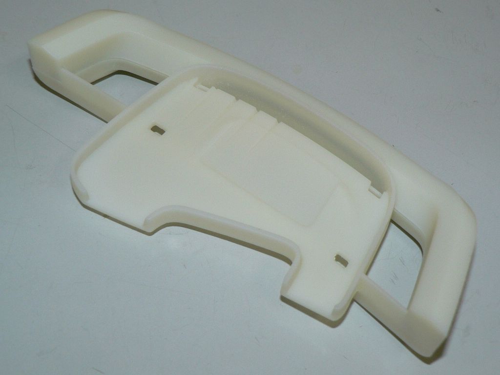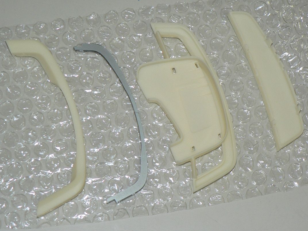 さて開発記の方は、Golf7用maniacsパドルエクステンション開発記(3)で内部構造の設計を完了したところまで説明しました。その後の開発進捗をご説明します。0次試作のクレイモックアップ、1次試作の切削品ソリッドモデルを経て、内部構造まで忠実に作り込んだ2次試作モデルを、もう一度プラスチックの切削加工で製作しました。そしてその試作品ができ上がってきました。構造確認ですのでバラストも試作してます。こちらはスチールの板を形状データどおり正確にレーザーでカットしました。