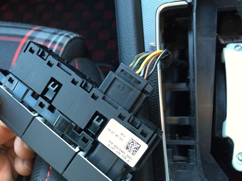 あとはmaniacs 4D Console Decorative Switch for Golf7(Type A)に換装するだけです。裏面のコネクタをもとのスイッチから抜いて、maniacs 4D Console Decorative Switch for Golf7(Type A)に差し替えてください。コネクタを繋いだらピグテールのケーブルはスイッチ装着部の角穴から下方向に通して、maniacs 4D Console Decorative Switch for Golf7(Type A)本体は元のスイッチの位置に差し込むだけでパチンと固定されます。カバー類を全てもとのようにパチン、パチンと嵌めて組み付ければ完了です。Type Aはこれだけでスモール連動のイルミネーションを点灯できます。