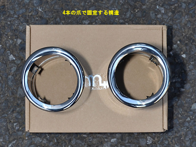 まずは製品を見てみましょう。製品内側には4本の爪があり、これらがマフラーパイプの外側をがっちり掴むことで、製品が確実に固定される構造です。ですので4本の爪がかかる位置まで正しく押し込むことが、装着時の最も重要な注意事項と言えます。