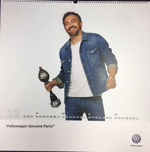 代表です。2016年もいよいよクライマックス。8日辺りから電話、メールも多く、急に慌ただしくなってきました!さて、2011年、2015年、2016年にもプレゼントさせて頂いた、VW AGのパーツカレンダー。2017年のものがなんとか入手出来ました。マニアを自負する方はぜひ入手してください!これは本国の純正パーツのカレンダーとして毎年発行されています。毎年、趣向を凝らした内容で、2017年はどのような内容かと期待していましたが、とても明るい、世界のVWオーナーに向けての笑顔が詰まった内容でした! クオリティはいうまでもありません!