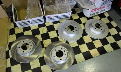 Touareg W12の前後ブレーキローター、ブレーキパッド、ブレーキパッド残量センサーを交換させて頂きました。