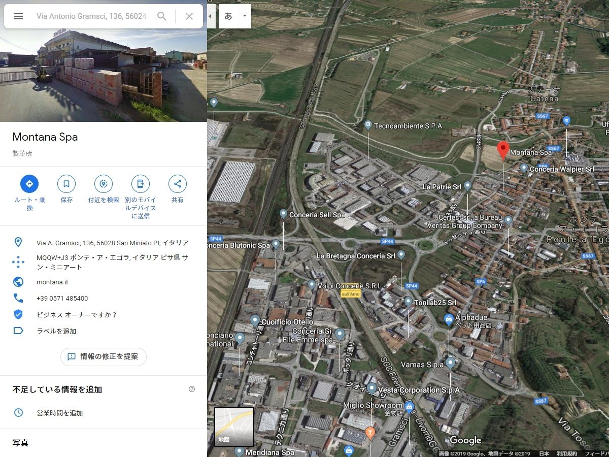 上掲のGoogle写真は、サンミニアート地域を鳥瞰したもので、赤のバルーンがモンタナ社です。それ以外のグレーのバルーンは、試しにクリックすると大半が「製革所」と表示され、この地域に多くのタンナーが点在していることがあらためて実感できます。
