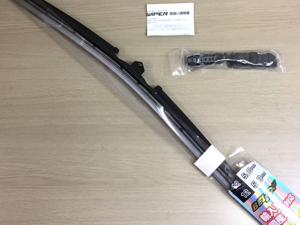 こちらはBELLOF製の、ブレード全体を交換するタイプの商品です。ブレード本体に、装着用のアタッチメントが数種類付属していて、広範の車種に適合するようになっています。販売は1本単位ですので、L/Rそれぞれ適合の長さのものをお買い求めいただく必要があります。丁寧な説明書と、ワイパーにマッチングのよい撥水剤も付属されていて、汎用品らしく至れり尽くせりの構成です。適合のアタッチメントを選んでブレードに装着したら、あとは純正と同じくパチンと簡単に装着できます。余った他のアタッチメント(←他の車種用)は不要ですので廃棄することになります。
