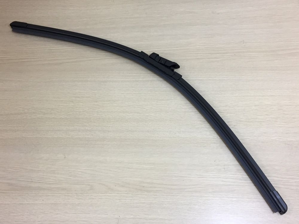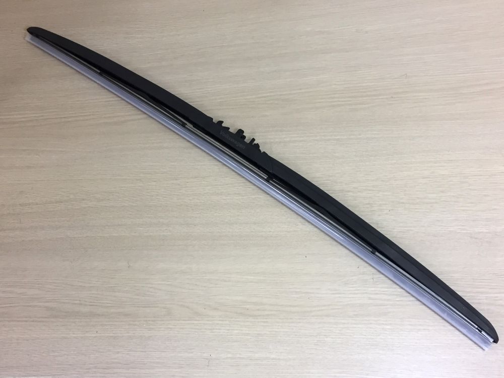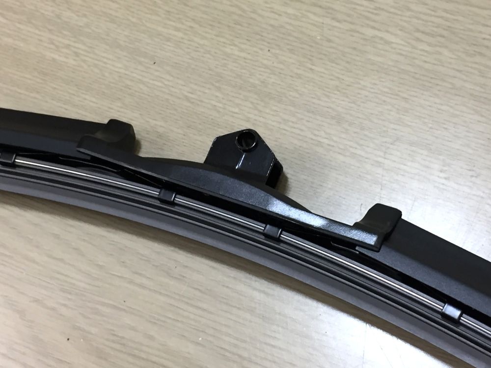 特徴としては、フラットワイパーと呼ばれるブレードの構造で、自由状態ではへの字に湾曲したブレードの弾力(反力)によって、ゴムをガラス面に均等に押し当てる、最新の方式です。中央から先端まで同じ太さの一本の棒状のブレードですので、見た目にスッキリとしていて、空力効果にもすぐれています。ブレードは非常にしっかりできており、信頼感があります。交換は、アタッチメント形式でパチンと嵌めるだけ、簡単です。