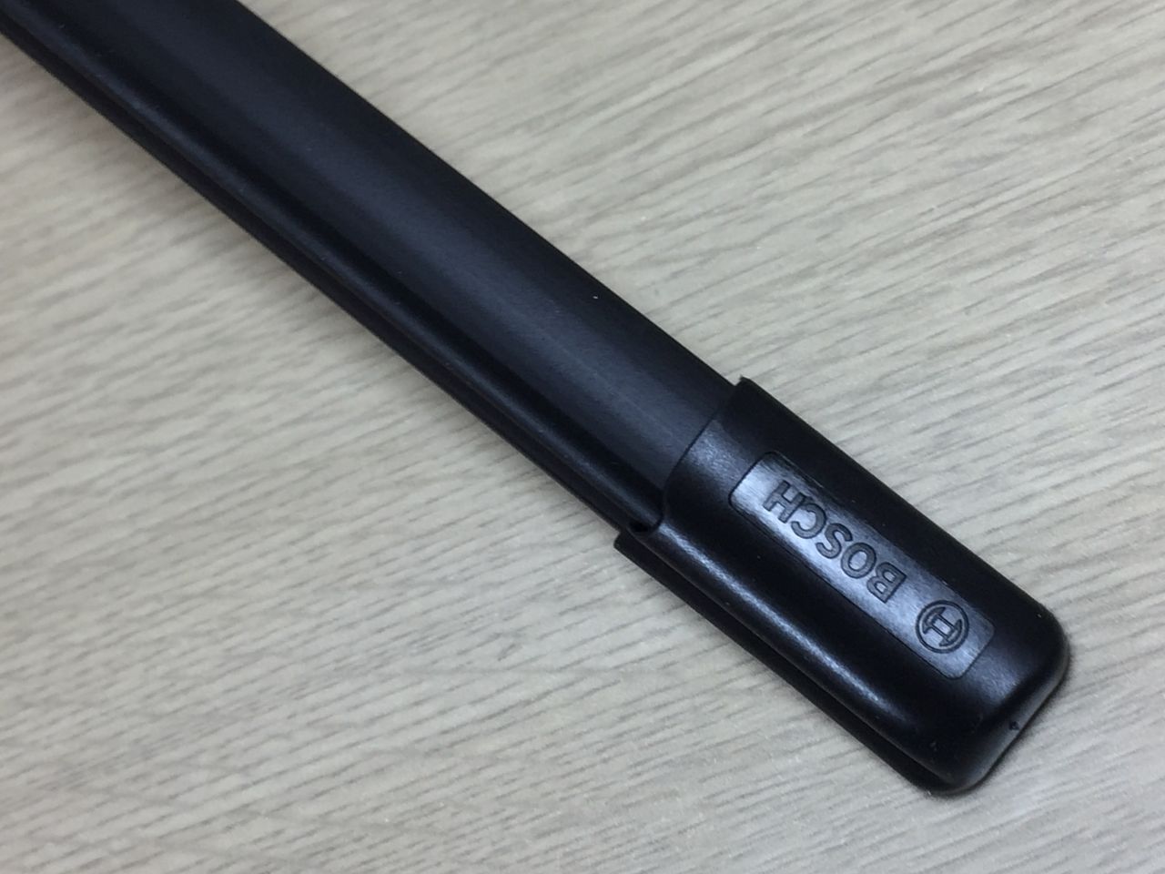 BOSCHはOEMでも多く採用されている信頼のブランドで、ブレードの先端のロゴも違和感なくむしろ頼もしく感じられます。また、あえて撥水効果を持たせていないことも特徴であり、ガラスコーティングに拘りがあってワイパーゴムのシリコン系の撥水剤が付着して欲しくない、というご要望にもマッチします。撥水効果ののあるワイパー商品(この中ではb)、c)、e)が該当)を使用してガラスコーティングとの相性が悪くビビリが止まらない、というレアなケースにも撥水のないこのBOSCHがビビリを止める最後の砦になる可能性があります。