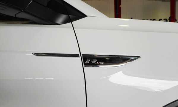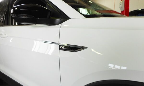 TiguanのR-lineと同じスタイリングになっておりますが、TiguanのR-lienバッジと比較するとフェンダー部のバッジはよりシャープな形状となっております。