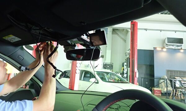 お取り付け位置は、フロントウインドウ上部から吊り下げ、ダッシュボード上の2パターンの取り付けがございますが、圧倒的にスマートに見える吊り下げでのお取り付けが人気となっております。