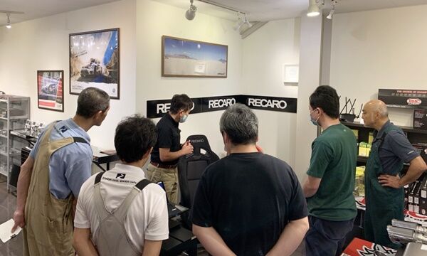 レクチャーには店舗スタッフ、メカニック全員参加させて頂きまして、RECAROの品質については勿論、取り付けポイントから座るポジションや、シートをひっくり返して、裏側までチェック等々、こと細かく伺ってよりRECAROに対しての知見を広げることが出来た他、今後発売されるRECARO COMFORT SPORT seat “RCS” にも実際に試座させて頂きました!