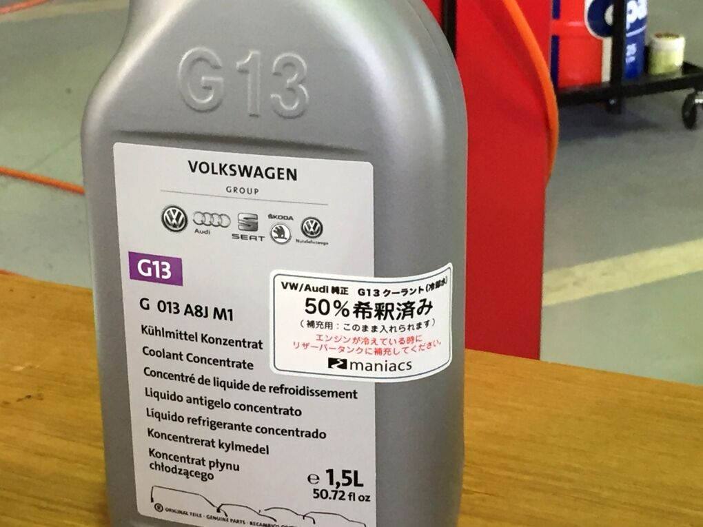maniacs 工房長 大谷です。VW/Audi 純正G13 クーラント希釈済500ml、maniacs Webshopで販売開始したのですが、予想を上回るご注文に驚いております。