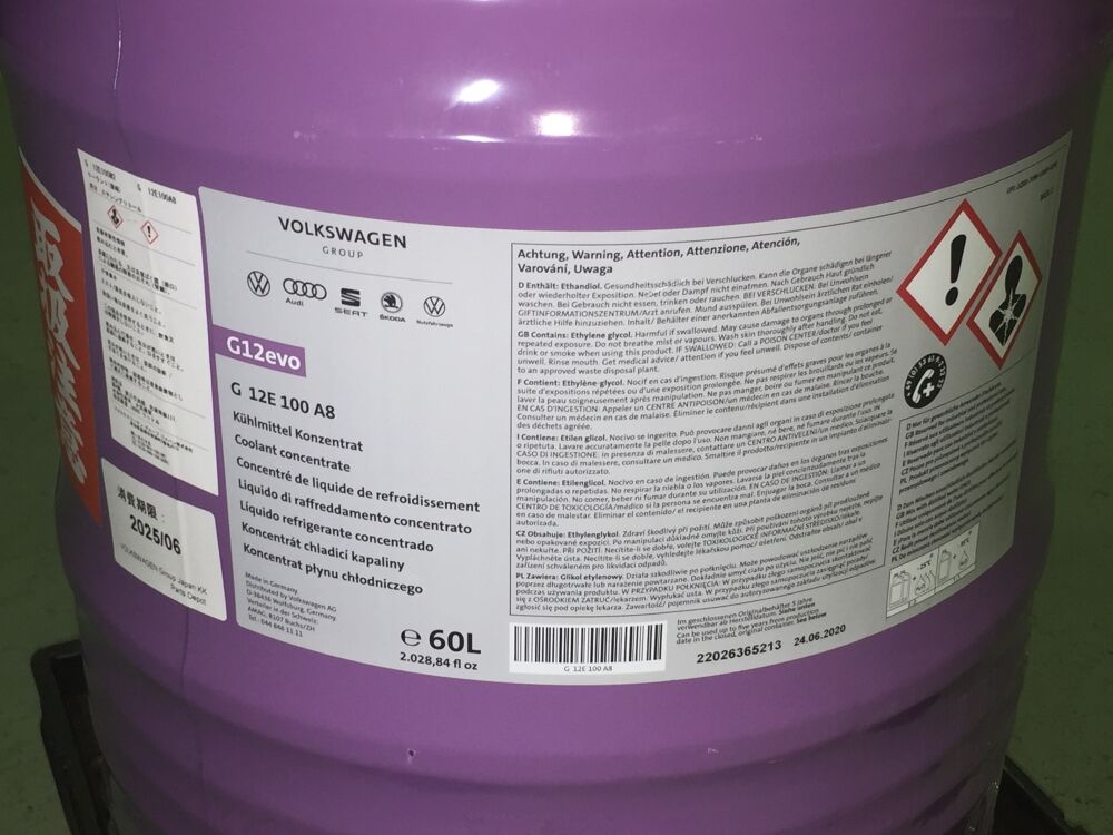 左写真のVW/Audi 純正G13 クーラント(原液)1.5リットルのボトルが日本で廃番になり、正規輸入のこのボトルは仕入れができなくなりました。Amazon、楽天等ではまだ売っているようですが、正規品はディスコンしていますので、市場在庫かまたは並行輸入だろうと思われます。