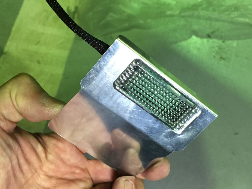 っが、「何とか装着できませんか?」というご要望をいただき、ブラケットを作って装着しました。アルミ板を良い感じにカットして曲げて、純正の灯体をピタッと嵌め込みます。