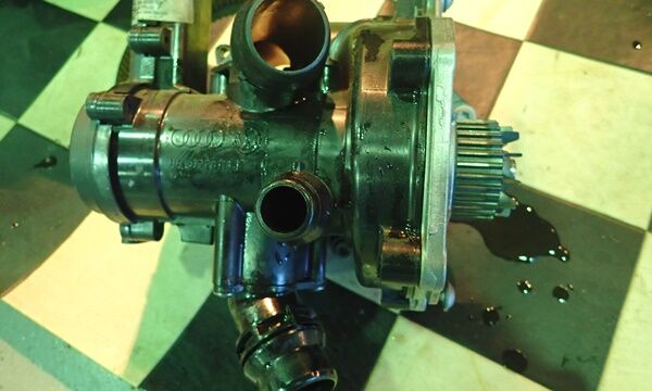 作業はGolf7と同様ウォーターポンプ、サーモスタットの交換作業となりまして、交換する前にはインテーク類、クーラントライン、電動ファンなどもろもろと外していきます。作業所間はかなりかかりますので、今回の2台も車検や、ブレーキパッド交換等その他作業も含めてのおあずかりで修理作業を行わせて頂きました。