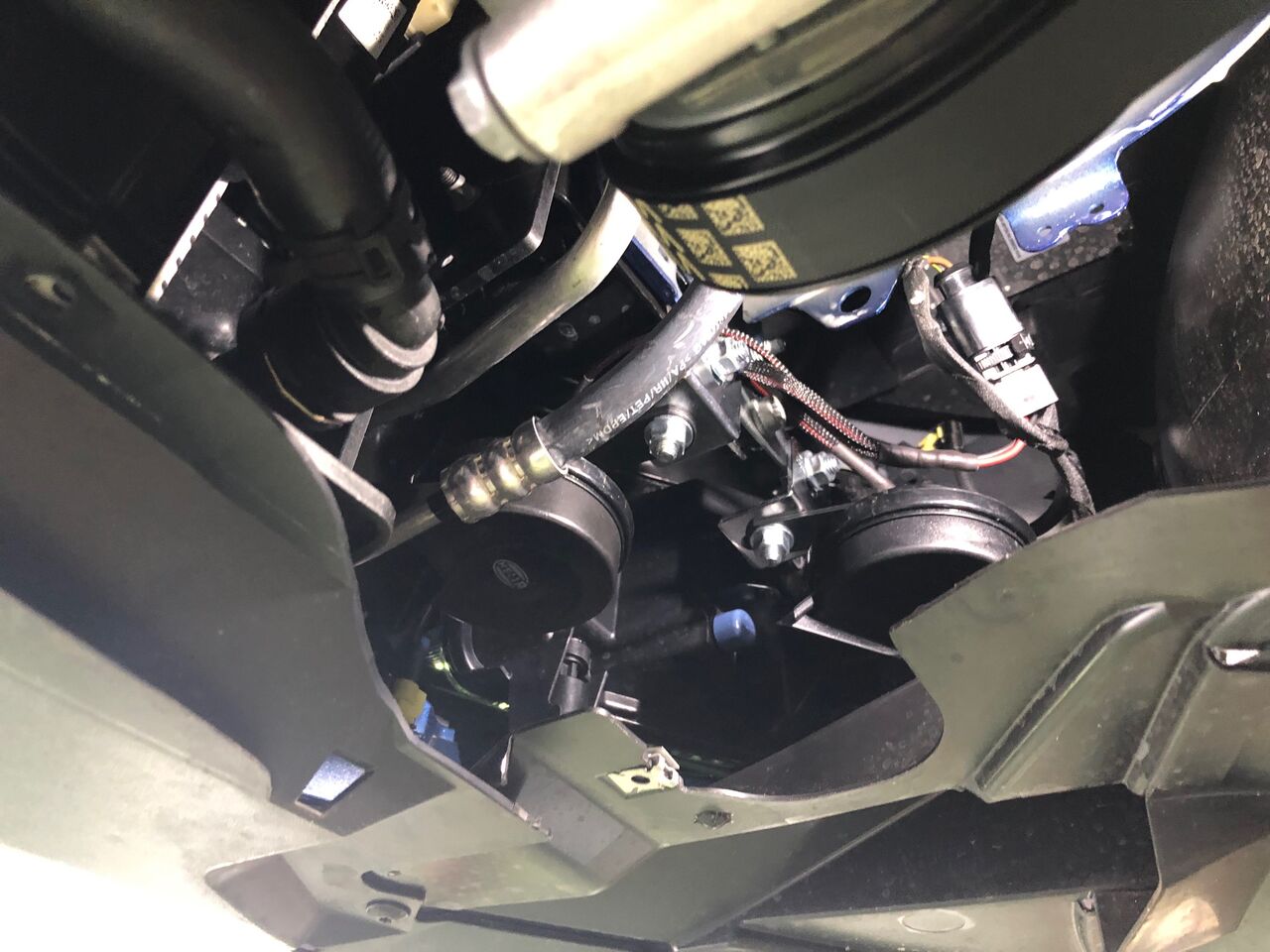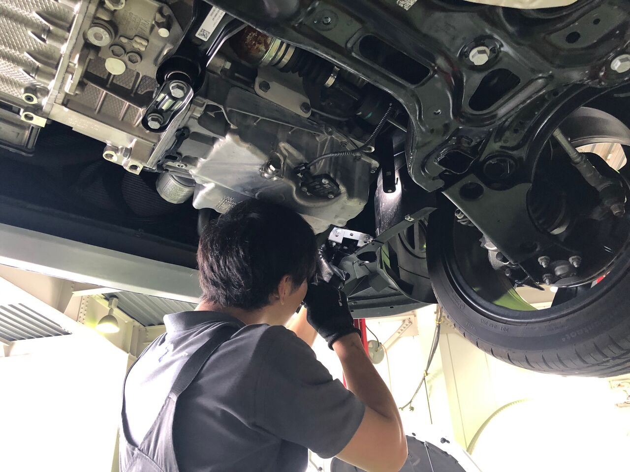 ホーン本体やブラケット固定のネジを一旦緩めたりしながら設置ポジションの調整をします。あとは、キットに付属のハーネスで、配線をパチンと繋げばOKです。アンダーカバーを閉めれば作業完了。カースロープやウマ(=リジッドラック)で車両を持ちあげればDIYでも簡単に装着できると思います。