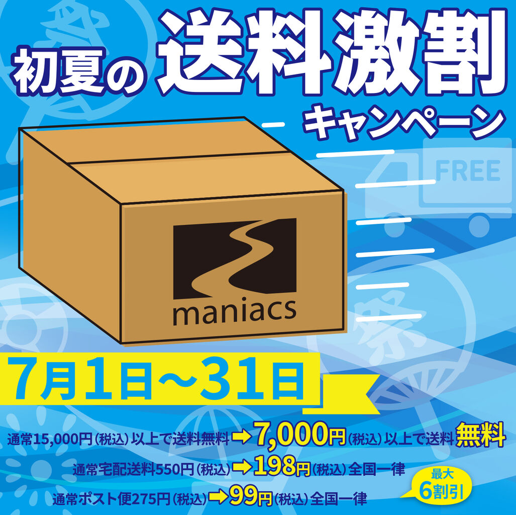 maniacs web shopでは初夏の送料激割キャンペーンがスタート、