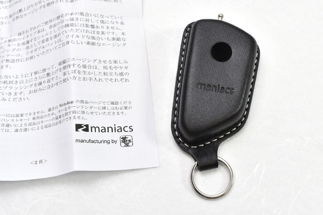 maniacs Leather key shell は従来にないデザイン性と機能性を兼ね備えたコンセプトを、全てのタイプに一貫して堅持しています。キー全体を堅牢な革のシェルで包み、キーリングや束ねたキーとの擦れ傷からもキーを守ります。不意の落下等の衝撃からもキーを保護し、大切な愛車のキーを新車時の綺麗な状態に維持できます。