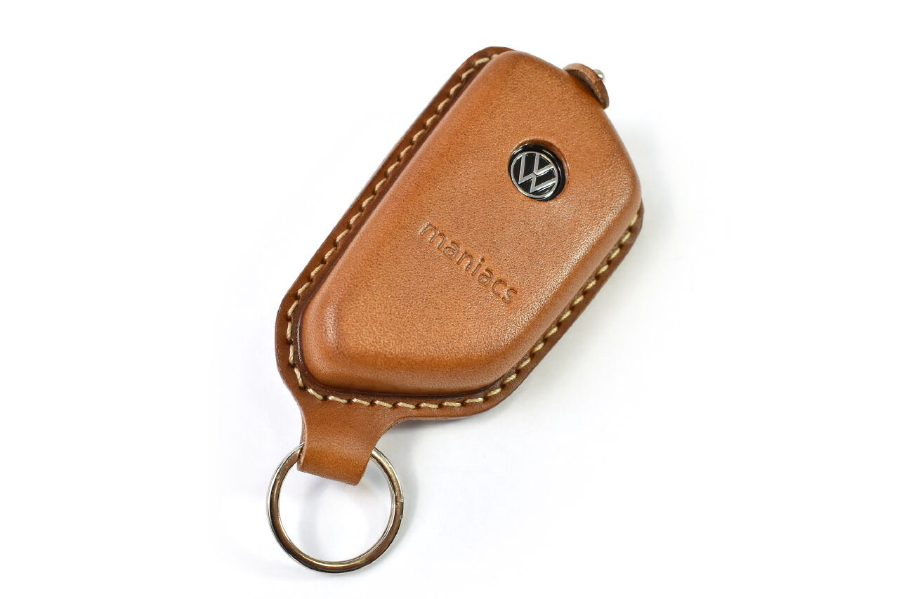 maniacs 工房長 大谷です。先日、開発状況をご紹介しましたGolf8用の maniacs Leather key shell ですが、製品が出来上がってきまして、昨夕VW-F typeとして新発売しました!!