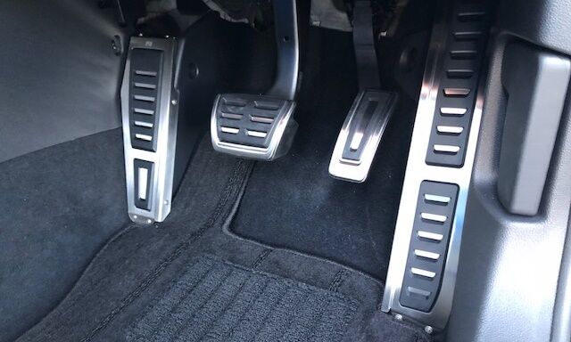 R-lineですとアクセル、ブレーキペダルはVW DSGペダルセットが装着されておりますが、フットレストは味気ないプラスチックで右足を置くスペースは勿論ありません。この左右セットをお取り付け頂くと見た目として足元の一体感が生まれるのは勿論、ACCを使用している際に足を置いておくのにこれ以上なくしっくりときます。ACCの機能も進化しているのでこれまで以上に使用頻度も増える事が間違いなしの商品となっております!