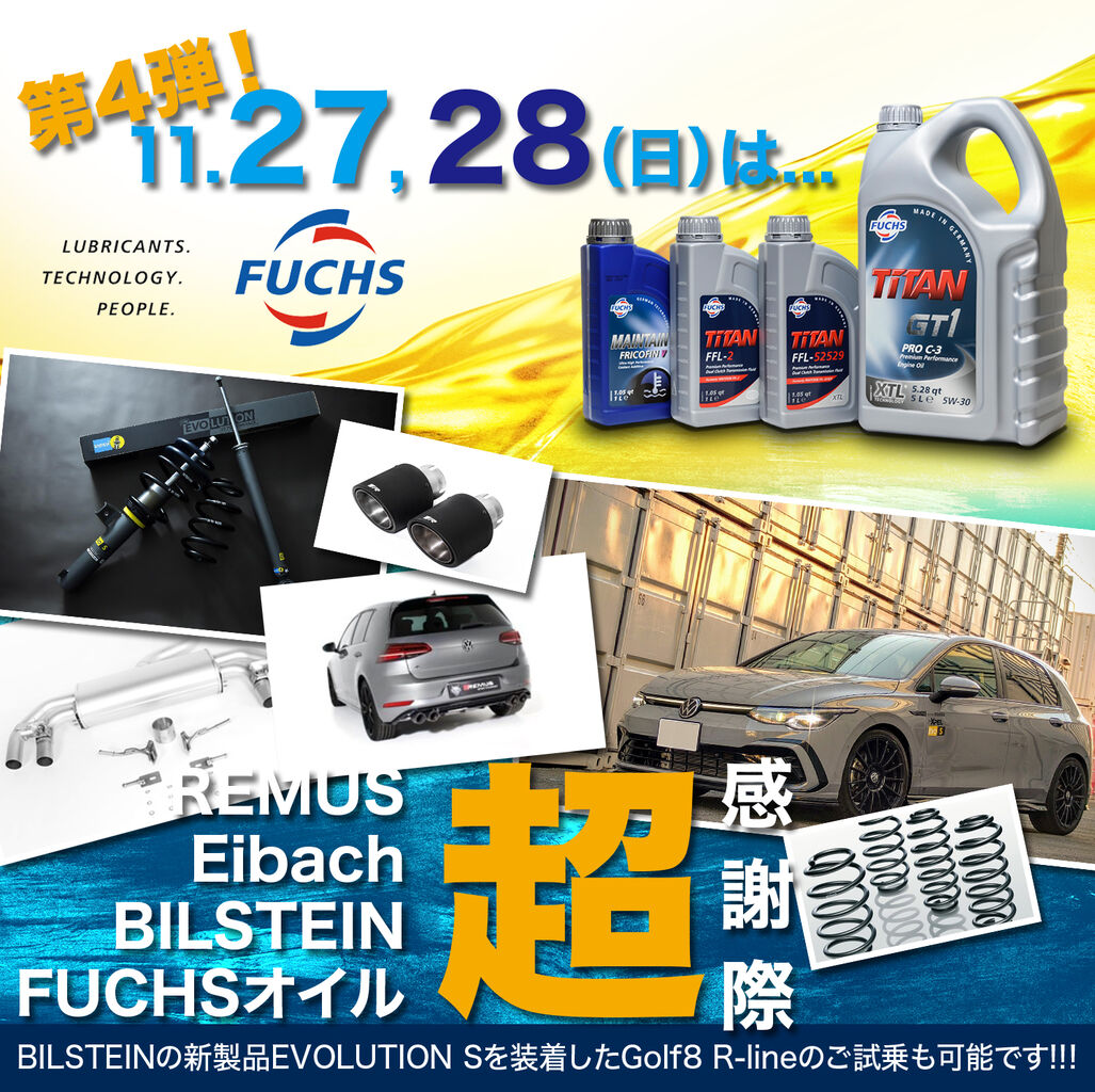 REMUS/BILSTEIN/Eibach/FUCHSオイルキャンペーン11月27日(土)、28日(日)の2日間開催中です!!