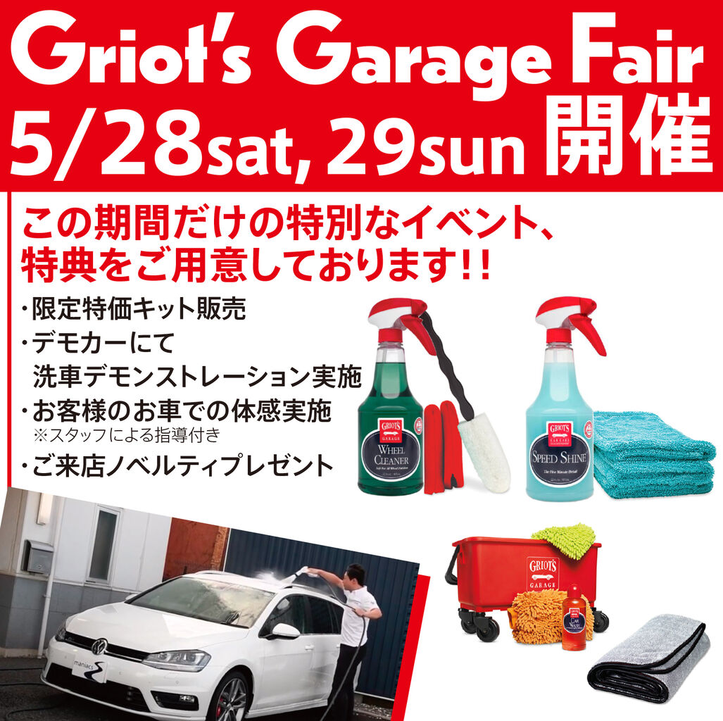 今日5月28日(土)、明日29日(日)の2日間開催の、グリオズガレージフェアがスタートです!