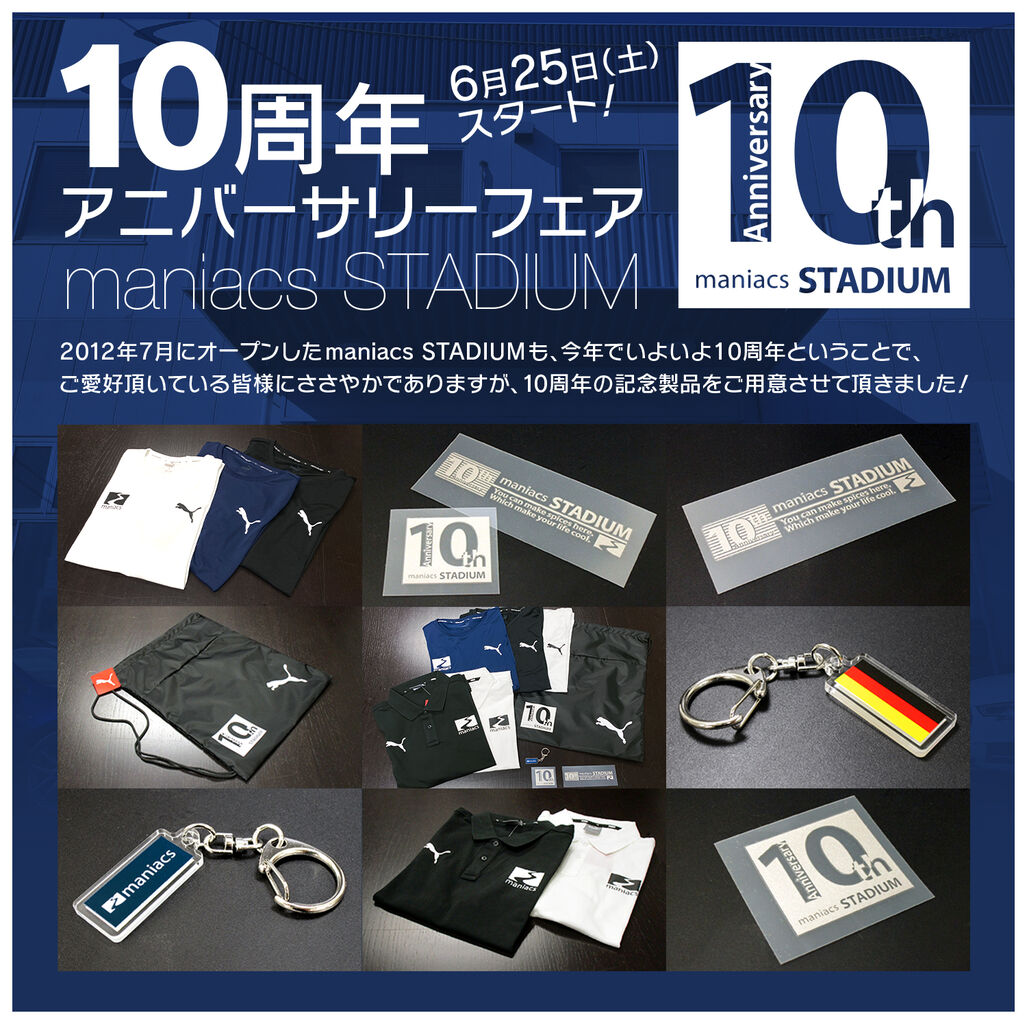 これもmaniacs STADIUMをご利用頂いております、支えて頂いた皆様のおかげということで、日頃のご愛顧に感謝いたしまして、maniacs STADIUMオープン10周年記念キャンペーン各種を開催をしてまいります!