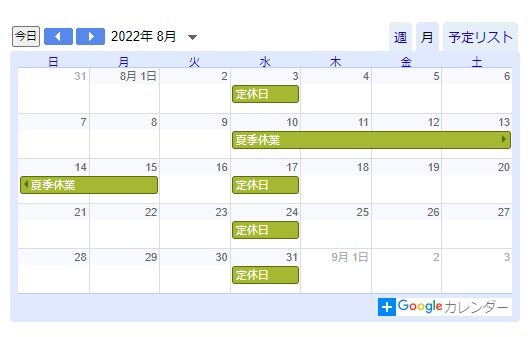 8月14日(日)休業日