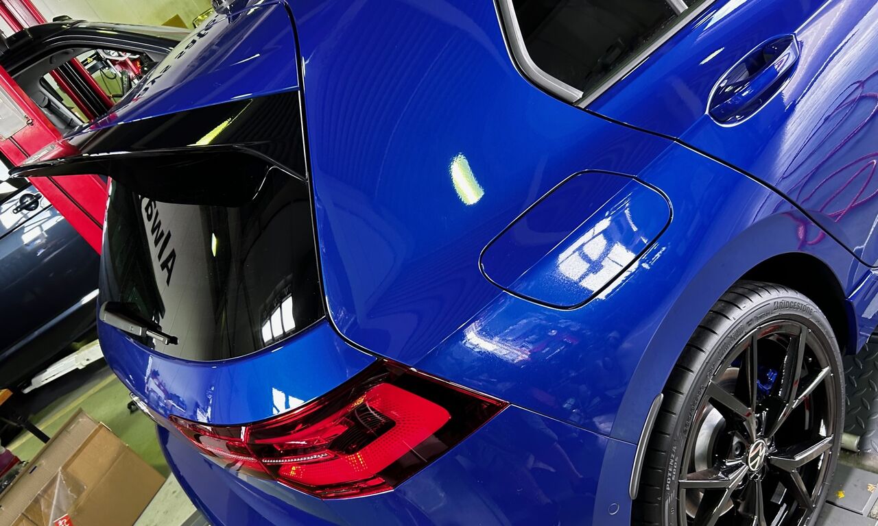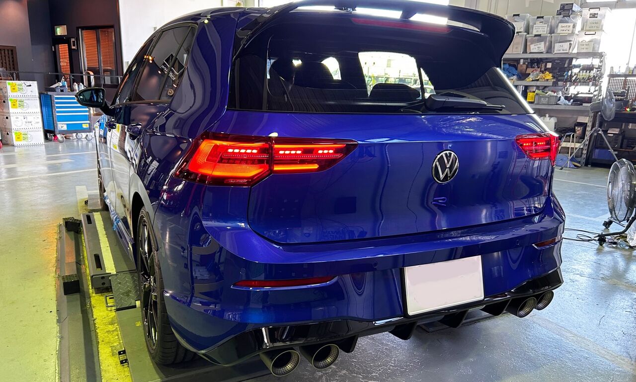 Golf8R 20 Yearsのお客様より早速の作業依頼を頂きました。Akrapovicマフラーに19インチグロスブラックアルミホイール、ナパレザーシート等々、まさに理想的な仕上がりになっております。